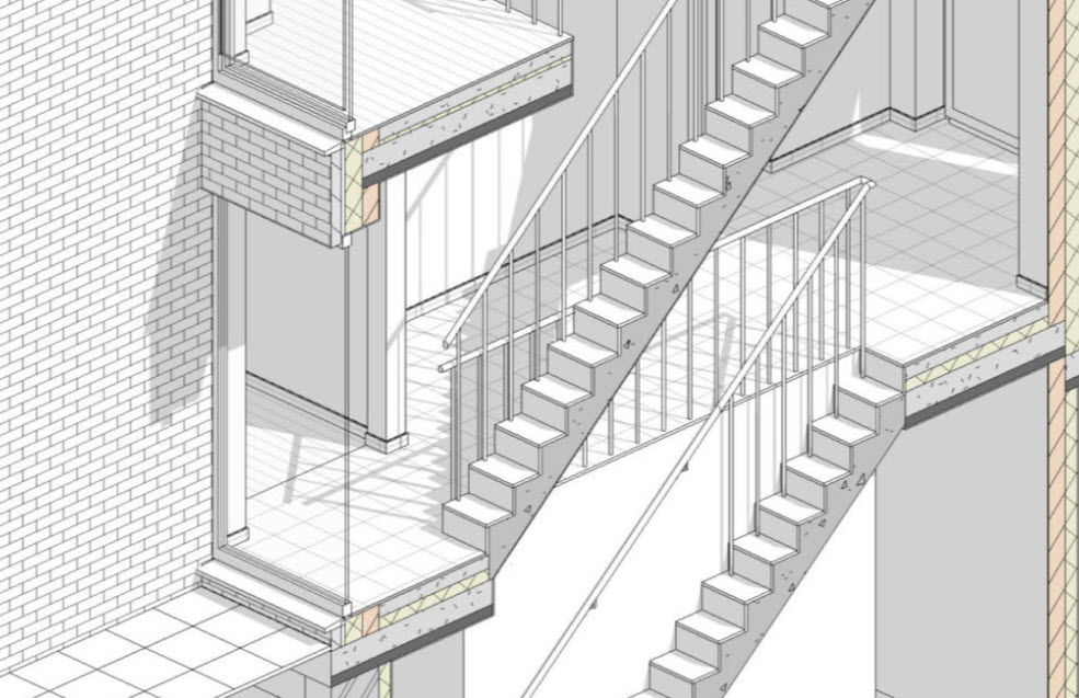3. Les éléments 3D d’architecture : TOUS les éléments constitutifs d’un bâtiment : les murs, les sols, les toitures, les plafonds, le mur empilé, les murs rideaux, les escaliers, les garde-corps, les rampes, les poteaux, les surfaces topographiques, les groupes, les volumes conceptuels (pour la création de modélisation rapide d’avant-projet, ou pour la modélisation d’éléments géométriquement plus compliqués (comme par exemple un paraboloïde hyperbolique).